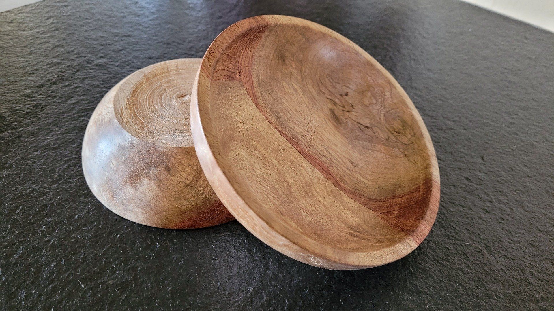 De bakjes, potten en schalen worden puur natuur geleverd, dus zonder afwerking met verf, lak of olie. Als je de voorkeur geeft aan een intensere houtstructuur, smeer er dan wat consumptieve olie op, zoals olijfolie of walnotenolie. De houtstructuur kleurt duidelijker op en krijgt daarmee een warmere, intense uitstraling.