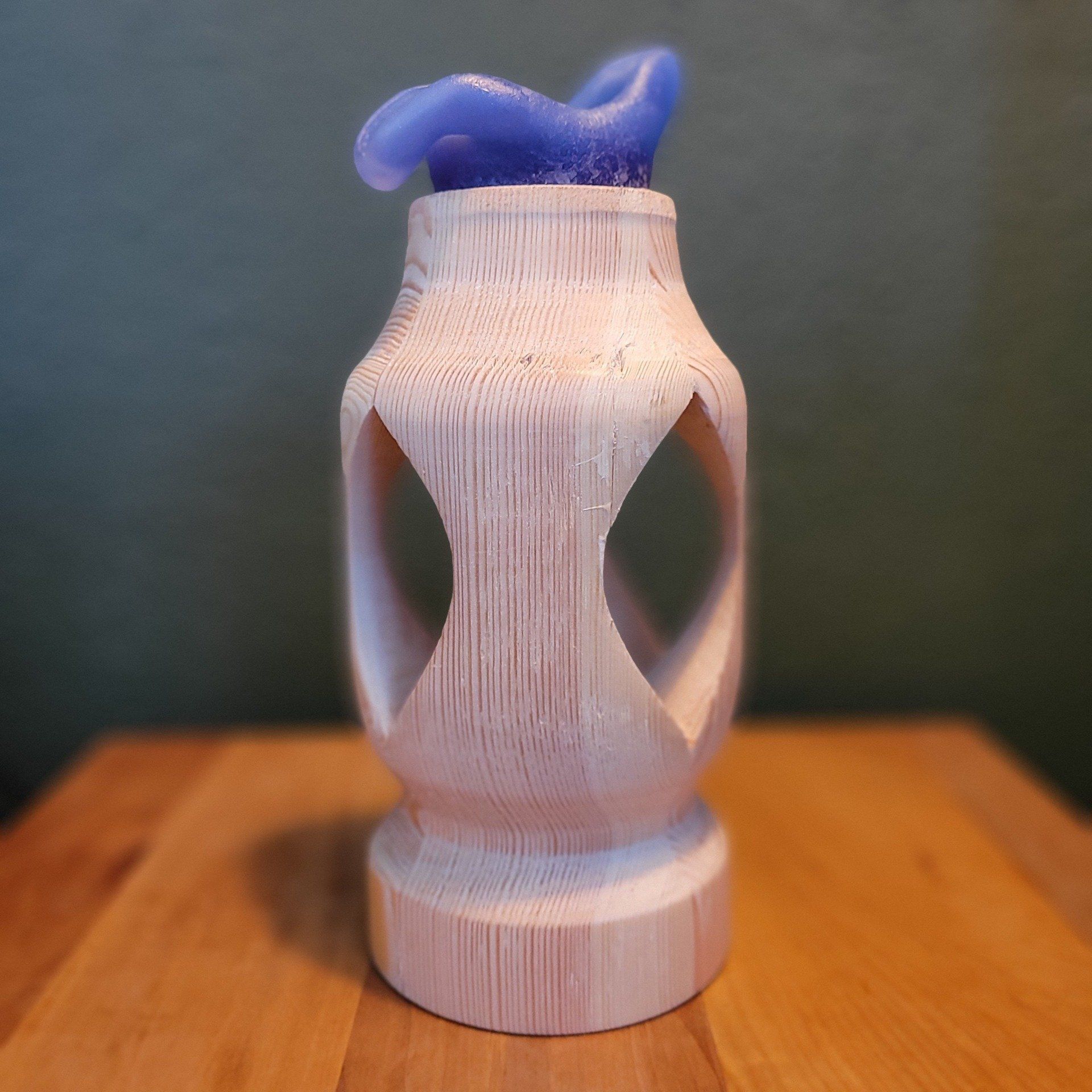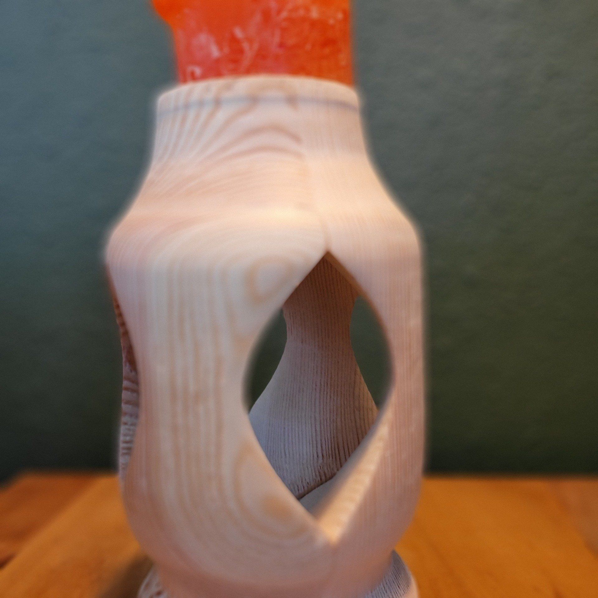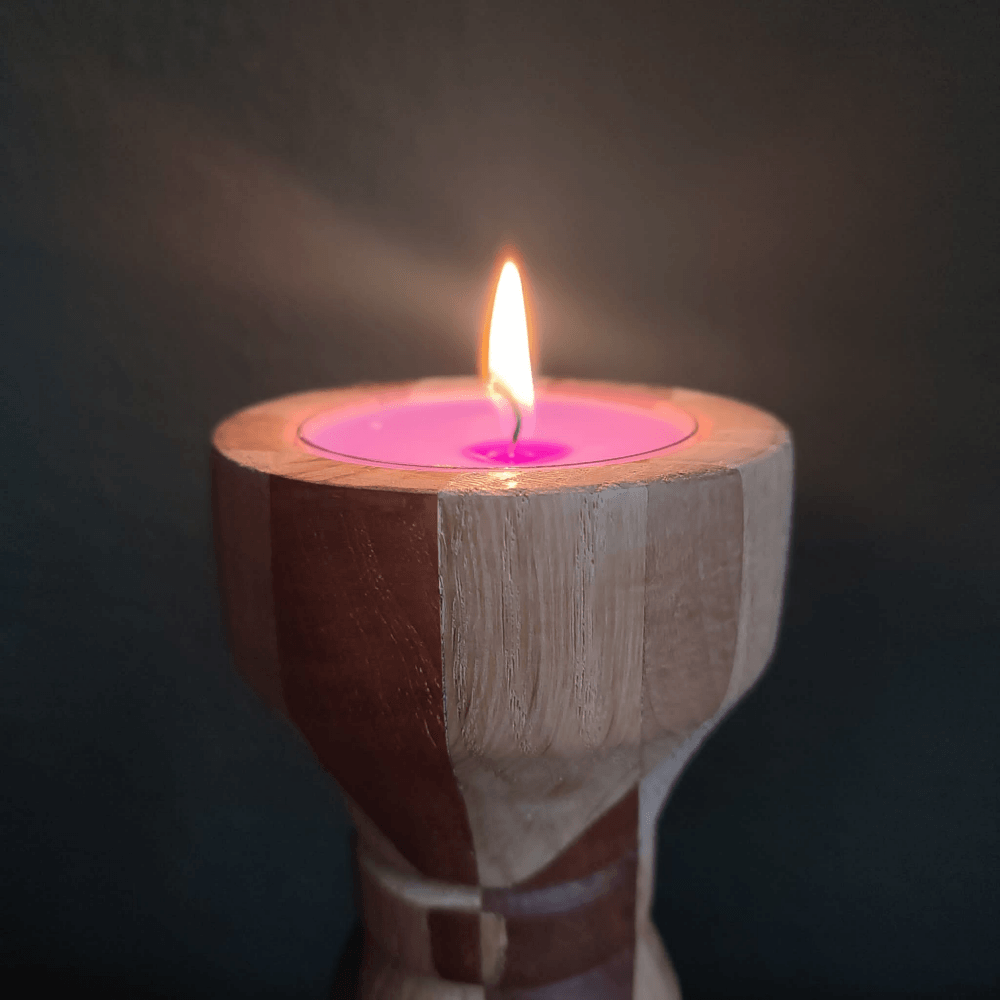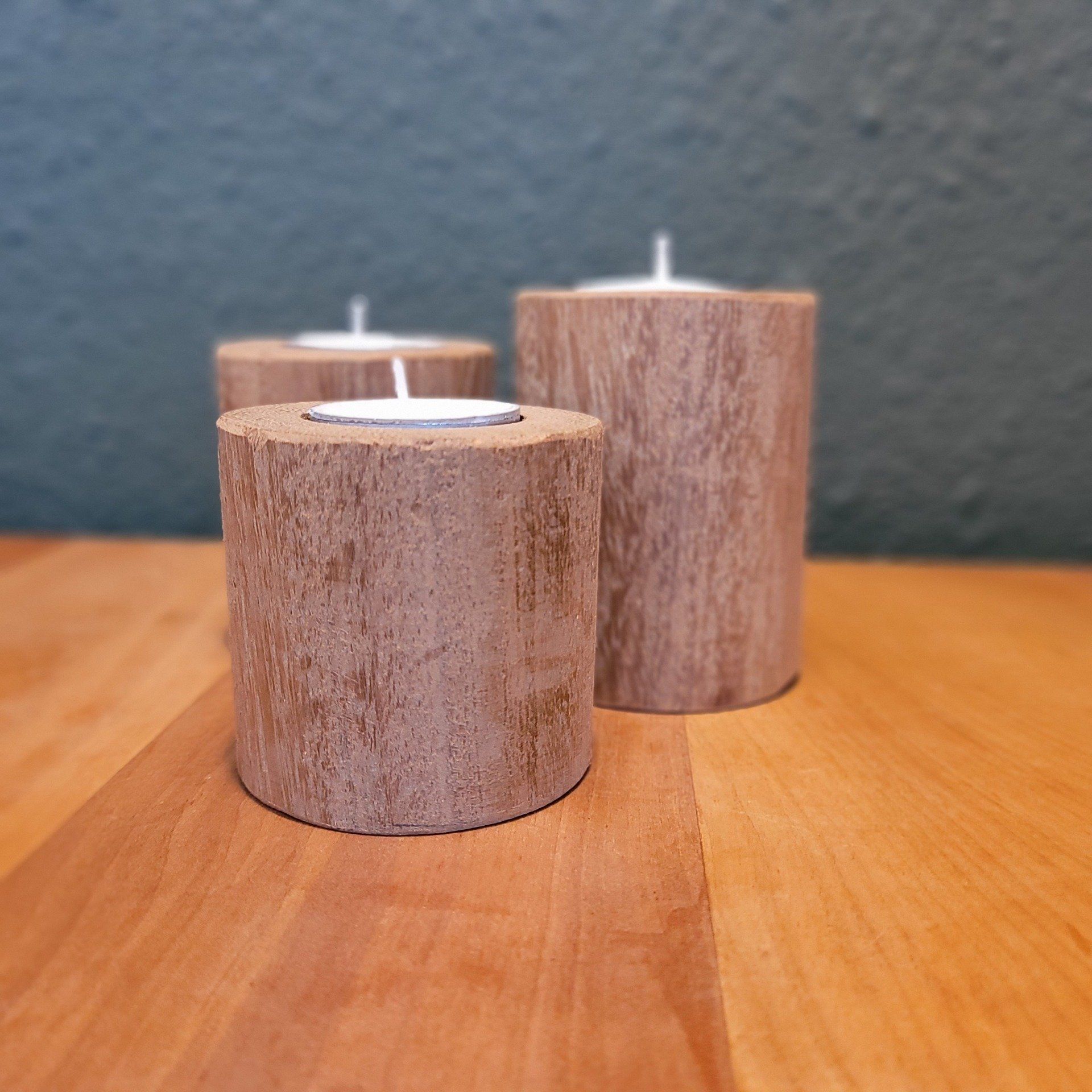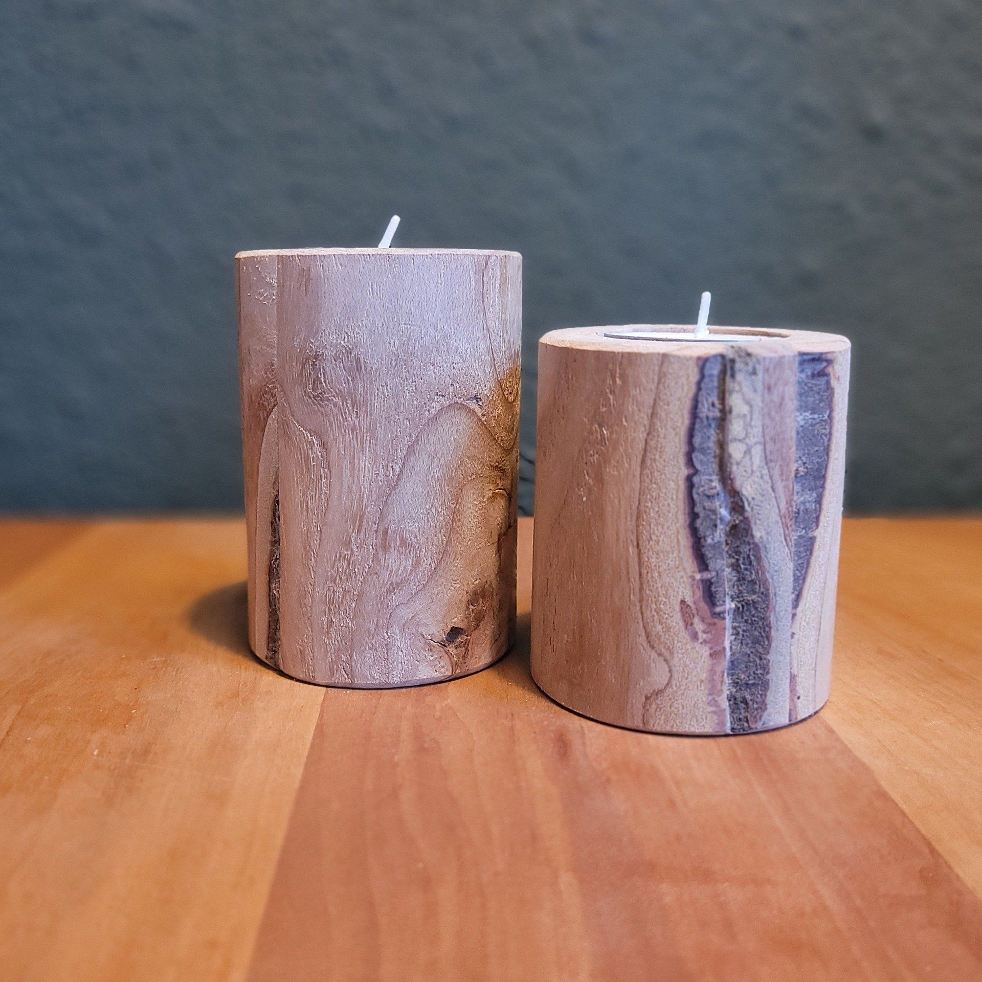 Deze houten kaarsenstandaards zijn verkrijgbaar in alle vormen en maten. Zelf vind ik het leuk om het hout eerst te verlijmen, dat houdt in dat er verschillende stukken hout aan elkaar worden gelijmd. Dat kunnen diverse soorten hout zijn waardoor er na het draaien van de standaard kleurrijke motieven zichtbaar zijn.