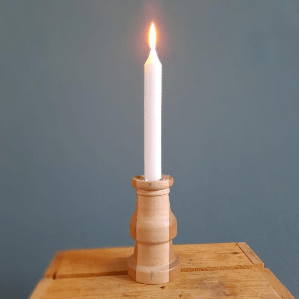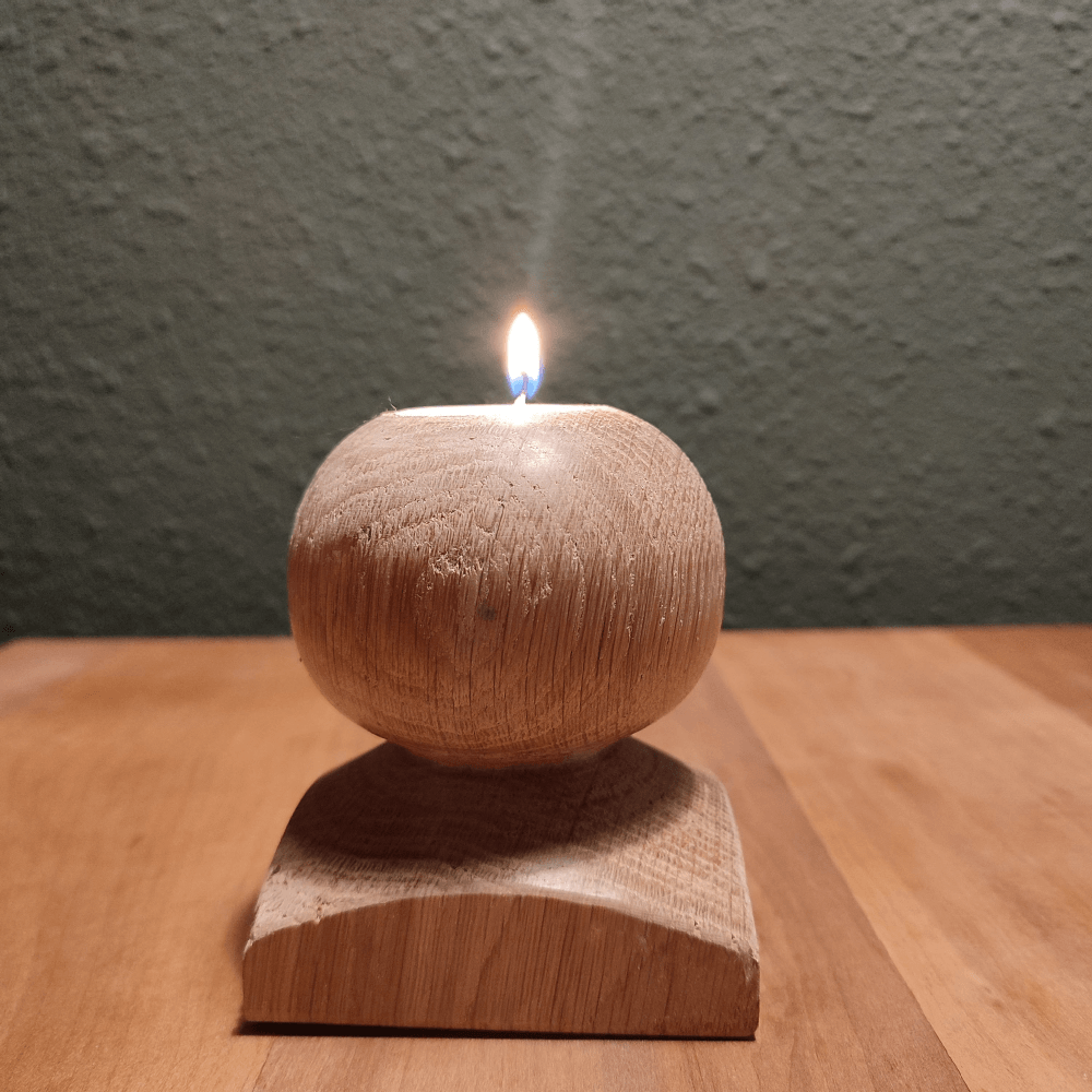 De kaarsenstandaards worden puur natuur geleverd, dus zonder afwerking met verf, lak of olie. Als je de voorkeur geeft aan een intensere houtstructuur, smeer er dan wat consumptieve olie op, zoals olijfolie of walnotenolie. De houtstructuur kleurt duidelijker op en krijgt daarmee een warmere, intense uitstraling. Het onderhoud is net zo gemakkelijk, gewoon af ten toe even opnieuw insmeren met olie. En door de consumptieve olie, blijven ze ook nog eens milieuvriendelijk. Op bestelling kan ik de producten ook alvast insmeren met olie.